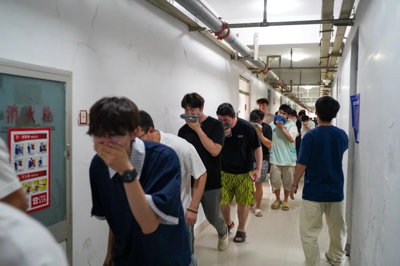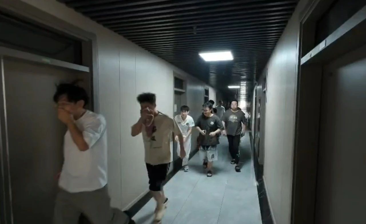 王志院长宣布:“2025年夏季消防疏散演练正式开始!请全体师生立即按预案撤离至安全区域。”